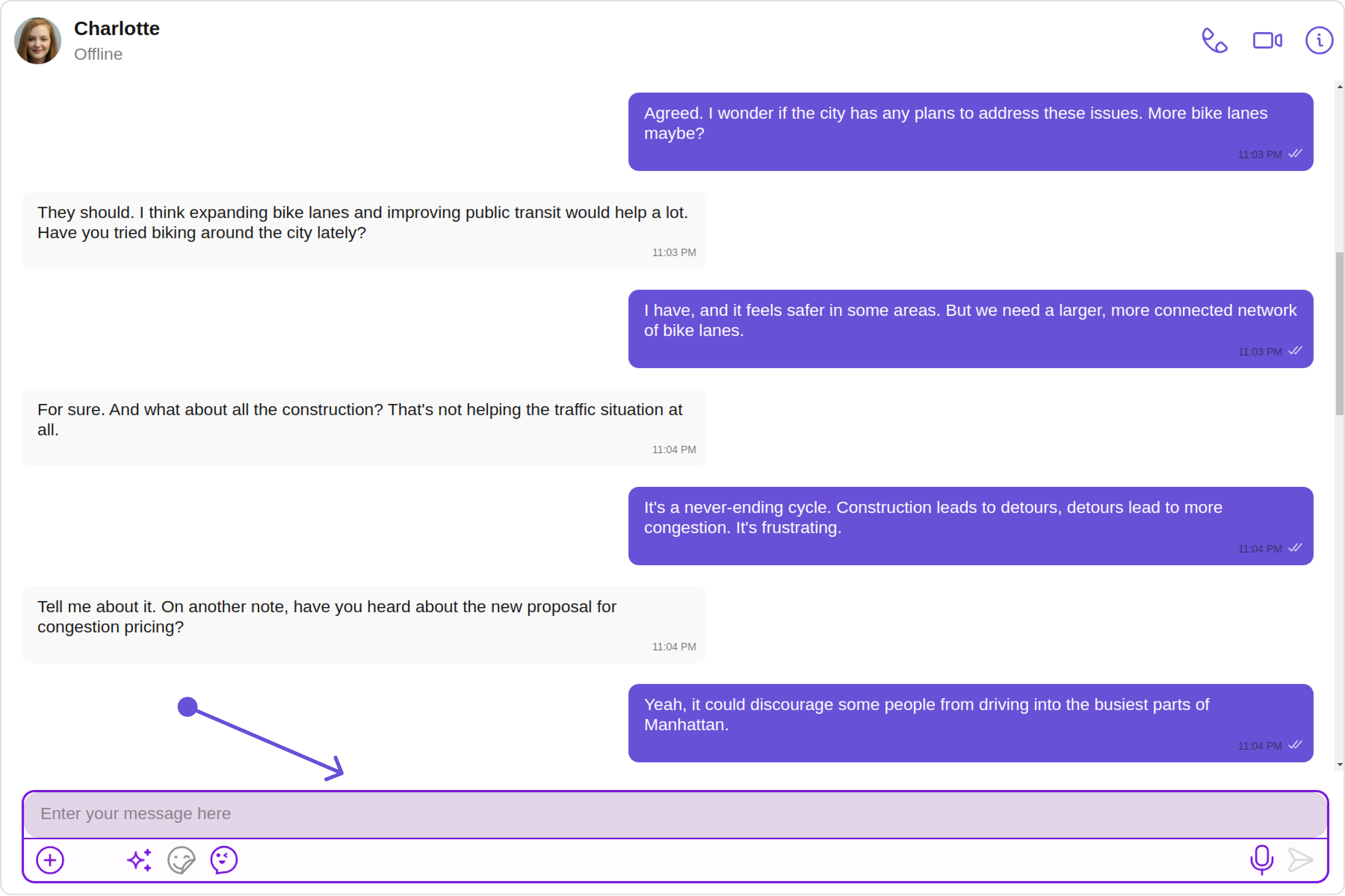 In this example, we’ll be adding styling to the message composer and custom text to the MessageComposer component using MessageComposerConfiguration.